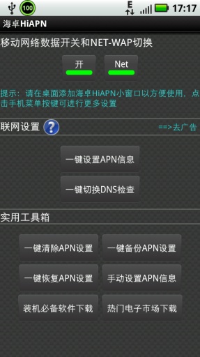 欢迎ROM作者将小巧绿色的海卓HiAPN纳为系统应用,以方便用户使用。