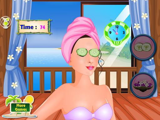 Shayna是瘋狂的溫泉治療,並喜歡花大部分的時間在美麗的地方。今天,她要維持在海灘上的溫泉會議,但不是唯一的。在這個遊戲中你必須通過Shayna,以幫助執行其任務。首先,你必須讓他們我們的朋友暢快沐浴感覺更好,精力充沛。那麼你必須採取背部按摩它們,把它們放回去一些岩石,供應放鬆。然後必須應用在面霜幾層放鬆皮膚及清潔皮膚,然後沖洗一下好去面對。在比賽的最後階段,要打扮Shayna,選擇一個髮型,服裝,配件和一雙鞋。感謝您選擇,幫助Shayna,並且已經選擇了這個遊戲,並邀請您來選擇和其他遊戲的女孩在這個開發商,看看您是否可以處理為好。說明:用你的手指玩