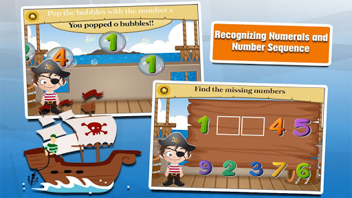 海盗船冒险一个有趣的海盗探索幼儿园游戏教幼儿园学习的基础 - 从学前活动,迈高和更先进一点。这些有趣的和令人兴奋的演习涉及的对象,颜色,形状和动物的模式识别和顺序,基本的拼写,匹配正确的名字和各种旨在发展幼儿识字具有挑战性的数学概念。