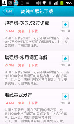 4、云端生词本,无缝隙学习:采用云端同步技术,为用户提供不同平台之间的生词同步学习服务,可以随时随地背单词、复习生词。