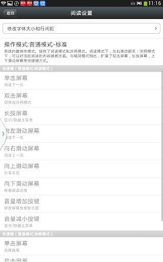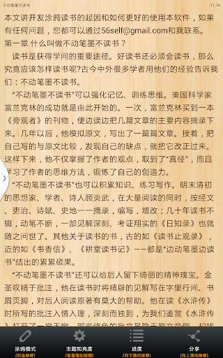 5.完全定制功能键(前后翻页,分享,查看阅读进度,主题,屏幕亮度,选择画笔)