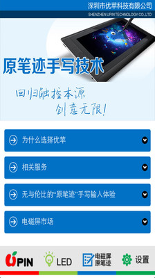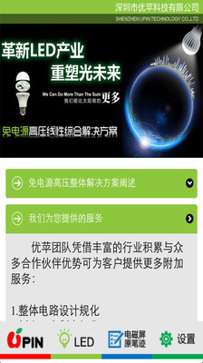 深圳市优苹科技有限公司成立于2011年8月,主营LED综合解决方案和电磁屏手导技术两大业务。目前优苹公司已经成功的完成各种商业,家居LED照明的高压新品研发,短短一年时间,已经在高压的这个全新的领域初露矛头,完成了从高压芯片,到高压灯珠,导热朔胶的资源优化,让高压线性的LED,从一个全新的概念开始真正的量产化。此项目目前已经与许多国内的一线大厂开始建立合作关系。为了让消费者能得到回归最人性化的输入方式,以及更好的触控体验,于2012年开始与台湾核心技术人员合作开发可以实现原汁原味的电磁屏原笔迹手写输入技术。项目目前已经广泛运用于金融 . 工控 . 医疗,以及消费类电子领域,与众多方案公司.集成商以及品牌厂商已经建立深度合作关系,并且迅速的扩展市场占有量。