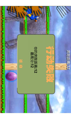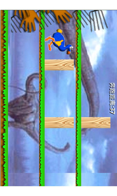 点击屏幕的底部,上部,来控制渡渡鸟行走的轨迹,从而躲开前方的栅栏,碰到栅栏后,渡渡鸟会减速,后被后方的猎人打死。