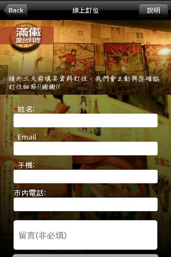 APP提供交通資訊、餐廳特色、留言交流、線上訂位等功能,以期提供給客人更多的服務 !!