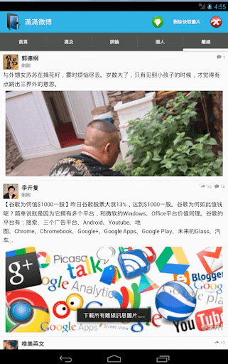 滿滿微博是基於四次元而修改的新浪微博用戶端軟體,讓你可以流暢地閱讀微博,真正的把微博當做一本書,一次到位塞到您的手機裏。