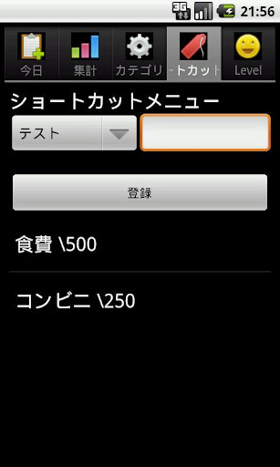 コンビニで500円、なんて項目を追加でき、ワンタッチで記録できます。