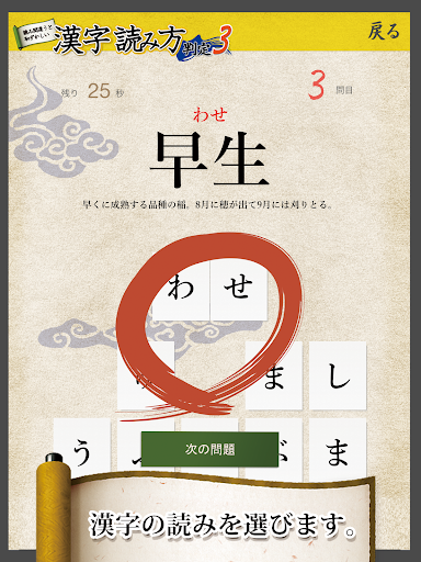 免費玩漢字読み方判定3 難関編 教養力をアップ! APP玩免費
