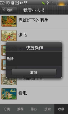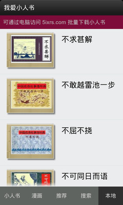 我爱漫画小人书专门为Android手机(推荐480*800以上分辩率)开发的连环画、漫画阅读软件。我提供数千本连环画,任由你挑选阅读。之后还会添加漫画本,为方便您浏览已将连环画按主题分为12大类:文学名著、武侠传奇、革命战争、民间故事、神话传说、外国作品、文革作品、现代作品、历史故事、人物传奇、少儿教育、成语故事。