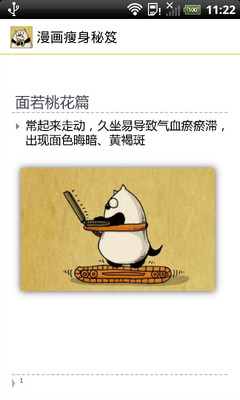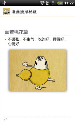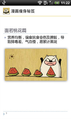 瘦身资料大家见多了,最轻松的减肥秘籍,养成习惯,减肥将不反弹的小技巧,让爱美的人士可以有效减肥。以漫画形式的瘦身秘笈将让大家耳目一新,文字简明扼要、易懂易明,搭配生动活泼的漫画,增加阅读的趣味性的同时,让爱美人士轻松瘦身,是非常有效的枕边瘦身秘笈。减肥瘦身原来可以如此简单!拥有S形曲线,拥有桃花般的粉脸,如何快瘦,如何让瘦成为习惯,如何变身遮住你的肉肉,内容尽在《漫画瘦身秘笈》,还不快快下载,一起来燃烧脂肪!