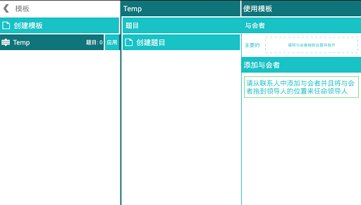 模板-为了不因每次创建会议结构浪费时间,请创建会议模板(议程)。每个模板包括题目和与会者。