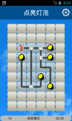 一款街机类的益智小游戏,点击各个线缆实现变换,最终将所有的灯泡通过线缆连接到电源上点亮灯泡,即获得本关卡的胜利。通过菜单可设置游戏初级模式、普通模式、专家模式、大师模式或重新开始游戏。游戏简单易玩,容易上手,是你消磨时间挑战耐性和智力的最好选择。