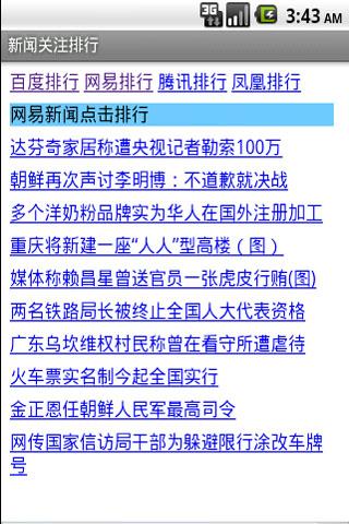 搜索排行、网易新闻点击排行、腾讯新闻点击榜和凤凰网新闻消