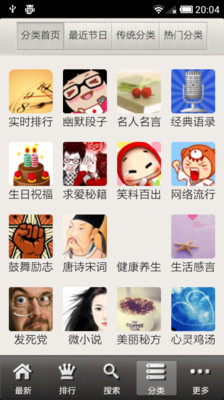 3.丰富齐全的分类,囊括各类节日 以及幽默,祝福,健康,小说等.