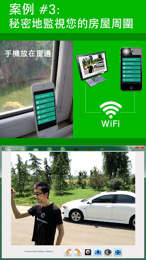 Third Eye (第三隻眼) 將您的手機變為無線監視器: 將手機放置在房屋內某處, 即可通過電腦隨時隨地觀看手機鏡頭傳回的即時畫面.