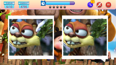《熊出没找茬》是一款可以让玩家疯狂和着迷的图片类找茬游戏,精选了大量熊出没和爸爸去哪儿的精彩、搞笑剧照,有着丰富的道具以及立体的背景音效,让你在锻炼脑力的同时充分享受闲暇时光。