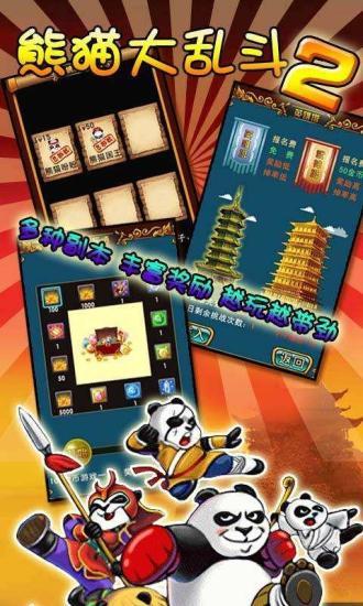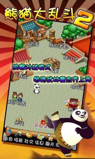 熊猫大乱斗2是熊猫大展身手的世界!在这里可以通过挑战其他玩家和BOSS提升等级,在战斗过程中,可以看到精彩、激烈的技能!在游戏中你的熊猫会有各种造型奇特、搞怪的技能!熊猫大乱斗2是一款激烈、精彩的格斗类游戏应用,以搞笑武侠为题材,玩家可与好友一起乱斗PK,一起成长,互拜师徒,还可以建立或加入帮派获得更高级的技能。游戏中每周还会举行武林大会,冠军熊猫还会题名在主界面,所有玩家都可以看到你的大名。