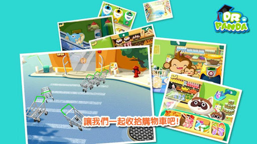 在熊貓博士超市裏孩子們將通過寓教于樂的超市主題的迷妳遊戲熟悉超市運作並培養貨幣意識。幫助小動物顧客們導購他們需要的商品,稱重不同的蔬果,收拾購物車和管理倉庫的貨箱等多款爲2至6歲的孩子精心設計的趣味迷妳遊戲在等著您和您的孩子哦!