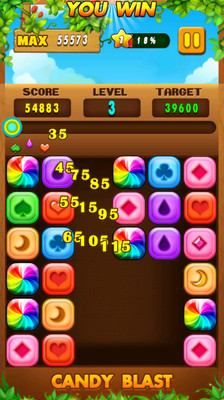 爆破扑克糖是根据扑克牌的四种花色以及棒棒糖等形状设计的一款消除爆破游戏,游戏操控方便,手指点击连在一起的同花色或形状的糖果,即可得分,同时会带有不同消除爆炸效果的道具出现,效果劲爆逼真,同时还能记录玩家的连击数。真实反映玩家的消除水平,赶紧来挑战吧。