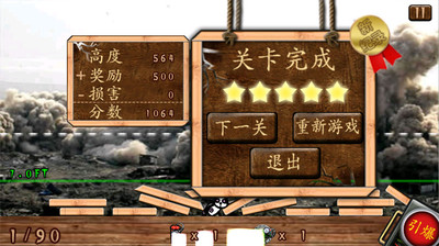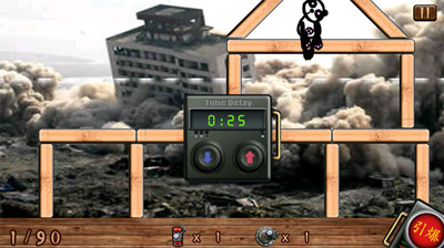 携带限定的炸弹数量,爆熊猫的房子,爆破后房子木块残屑的高度不能超子出游戏里面白色的水平线,一旦超出任务失败。在爆破过程中熊猫在下跌过程中能碰到金色的五角星增加难度分。游戏里爆破的效果十分刺激好玩。