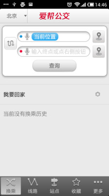 2.换乘查询:不知道公交站名,只需输入地点名或当前位置或地图选点即可;