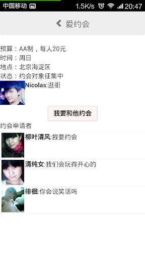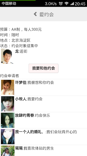 爱约会是时下同城男女最爱的手机交友软件。已有大量单身男女在此相亲谈恋爱。