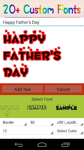 對於這個父親節送一個可愛的卡給你爸跟你自己的圖片裝飾自己的話!此應用程序的功能,使一個獨特的定制父親節電子賀卡最簡單的方法,並通過電子郵件, Twitter和Facebook發送您的卡最簡單的方法。