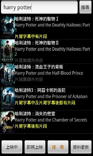 “片尾報你知” 是一個專門查詢電影片尾資訊的小工具,它透過查詢美國最大片尾資訊網站MediaStinger來得知電影字幕中與字幕後的精彩片段資訊,並與台灣Yahoo!奇摩電影作整合提供中文的片名與劇情簡介來彌補英文網站不提供中文服務的缺憾。