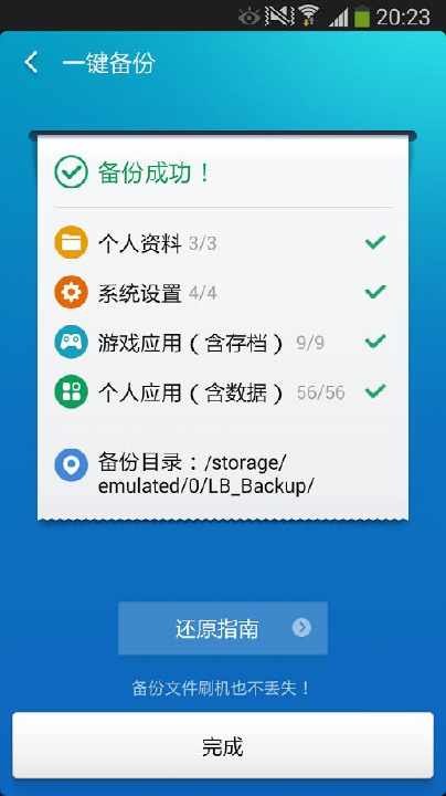 最全面的整机备份:联系人、短信、游戏存档、应用数据、wifi设置等均能备份与还原。