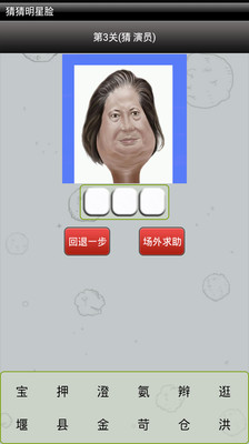 一款娱乐应用软件,通过看图片,来猜出明星(演员,导演,歌手等)他们的名字,如果不会了,可以场外求助,跟自己的朋友,恋人,一起玩吧,越玩越开心!!!!