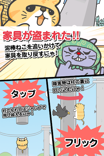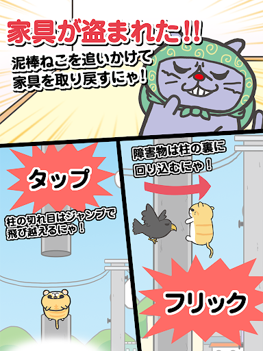 追いかけるえきぞうを泥棒猫が邪魔をしてくるにゃ。 障害物はフリックで華麗に避けるにゃ!