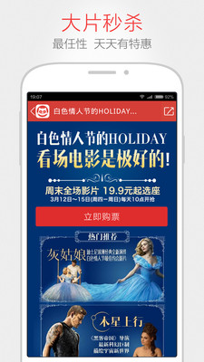 美团猫眼电影每周都有低至2折的电影抢票活动,提供超值的电影票团购,方便、快捷、便宜,让每一位消费者获得真正的优惠。欢迎大家去时光网、豆瓣电影、格瓦拉、万达电影、院线通、QQ电影票、大众点评、百度糯米进行比价。