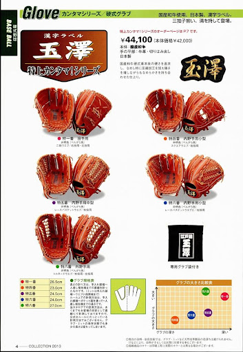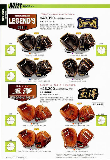 野球用品一筋100年の歴史を持つ、玉澤/TAMAZAWAの2013年のカタログです。定価 525円 ☆オールカラー59ページ