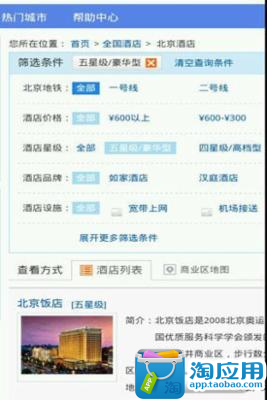 「玩上海订房网」应用程序由WowBooking.com制作,为同程网的联盟伙伴,透过玩上海订房网应用程序,协助您浏览上海地区最多酒店房价并立即于手机上完成预订。网上预订不收取您任何费用。只要您预订之后接收到预订成功短信,酒店就会给您保留房间,免去直接到酒店无房的尴尬。本应用程序更可快速搜寻全中国各大城市星级、经济型、连锁、商务酒店..等300多个主要城市的20000余家酒店,并享有2-7折的在线预订服务。查找酒店(1)您可以在我们的酒店搜索框内选择酒店请详细选择城市、入住时间、离店时间、价格、酒店等级,输入信息越详细,搜索结果越能满足您的要求。(2)您可以通过页面上的酒店、热门城市、连锁酒店品牌等直接挑选酒店。 选择酒店在搜索结果中可以看到各个酒店的详细信息,包括酒店名称、地址、详细介绍、特色服务以及最新最及时的实时价格。 在线预订请您准确填写入住人姓名、联系电话、入住时间、离开时间、房间数、人数等信息。 确认订单您在网上提交订单之后,并不意味着您的订房已获确认,一般在20分钟左右,我们会以短信等方式通知订房结果,节假日等待时间会稍长。 入住酒店在规定时间内您到达酒店之后,说明是通过联盟自定义嵌套页面订好的房间,报一下预订时填写的入住人姓名,酒店前台即会为您办理入住手续。 在网上预订有保障吗?在网上订房当然有保障!网上预订不收取您任何费用。只要您预订之后接收到预订成功短信,酒店就会给您保留 房间。免去直接到酒店无房的尴尬。 如何确认订房成功?您在网上提交订单之后,并不意味着您的订房已获确认,一般在20分钟左右,我们会以短信等方式通知订房结果。 节假日等待时间会稍长。 如何办理入住?在您到达酒店之后,说明是通过网订好的房间,报一下您预订时填写的入住人姓名,酒店前台即会为您办理入住手续。 关于入住、离店的时间?按国际惯例一般酒店的入住时间为14:00,离店时间为正午12:00,如提前入住或推迟离店,均须酌情加收一定的费用。一般情况下,酒店会将预订好的房间保留至入住当日的18:00,过时将不予保留。如您不能在18点之前到店,请在预订的时候填写备注信息,我们会帮您和酒店进行协商,并及时通知到您。如您在12点前前往酒店办理入住,如酒店没有空房,请