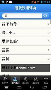 特点: 汇集了6万多个中文词汇,2万多个中文汉字,5万多个成语词库以及二百多个经典成语故事于一体,是安卓系统上最棒的中文学习软件。 创新: 综合多个词典,界面美观,操作简单,词典之间能相互关联。 现代汉语词典(第6版)根据国务院指示编写,是新中国第一部权威、规范的现代汉语词典,大众阅读、国民教育的必备工具书。 《现代汉语词典》是Android上最好、查询速度最快、最全面、最具操作体验的现代汉语词典,全面收集了最新版本的新华字典,汉语词典,成语词典,成语故事。快速,准确、详尽、齐全、细致、深入,是本词典的最大特点。 软件收集了中国所有的国标汉字,收集的汉字完整,权威,科学,专业,是一个优秀的学习工具助手。 软件功能介绍: 1.内置权威的新华字典 2.内置权威的成语词典 3.内置权威的现代汉语词典第6版 4.内置中华成语故事 5、全面支持高清屏幕,包括QHD屏以及android Pad,支持分辨率为 关键词: 汉语词典,汉语,语法,字典,词典,辞典,英语,成语,故事,成语故事,新华字典,中文