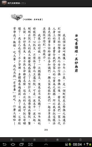 令人可喜的是,有不少讀者在閱讀《現代因果實錄》明白了道理的同時,對照自己所造之業,決心改正,結果在內心生起懺悔心的同時,身上的病苦竟突然好了,或減輕了許多。還有一些未斷葷腥的讀者,閱讀此書後始知吃葷腥罪業深重,即刻斷除,未曾想幾個月後不僅身體日復一日健康,皮膚也變得白皙了,人顯得年輕了許多。更有人在事業上開始興旺起來。體形較胖的人,變得健美,而瘦弱的人在吃全素後反倒增加了體重,日復強壯,還有許多孕婦徹底斷除葷腥,學念地藏經,生下的孩子既健康又聰明,相貌莊嚴且安樂易養。總之,戒除葷腥好處多多,每個人因緣不同,獲益也不同。時常傳來的這些令人法喜充滿的消息,讓我深深地感到,我們眾生猶如久旱待雨的漫山百千種植物,佛法則是甘露,一雨普覆,大樹小草各得所需。所以,深入經藏,增長智慧,聞即信受,才能離苦得樂。這也是我寫此書本來的目的:向內求才能獲益,即「一切唯心造」道理的實踐。