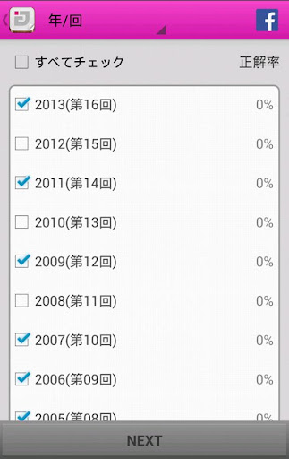 それぞれの機能において、回・分野・正解率・出題数・出題順を詳細に設定し、自分に合った条件で問題を解くことができます。また、それぞれの項目において、正解率を表示していますので、自分の苦手分野を確認しながら、問題の条件設定を行うことができます。