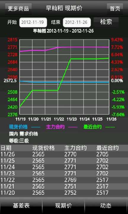 现货价格决定期货价格,期货价格影响现货价格。期货通是生意社根据这一原理,为期货投资者专门开发的一款移动客户端软件。期货通,是生意社基于其强大的现货价格库,并结合期货品种价格数据,专为期货人士开发的国内第一款现期价格数据移动客户端。期货通集成了现货价格行情、主(近)基差表、现期图和商品动态等多种功能,旨在把握期货价格运行状态,为期货投资的正确决策做参考!