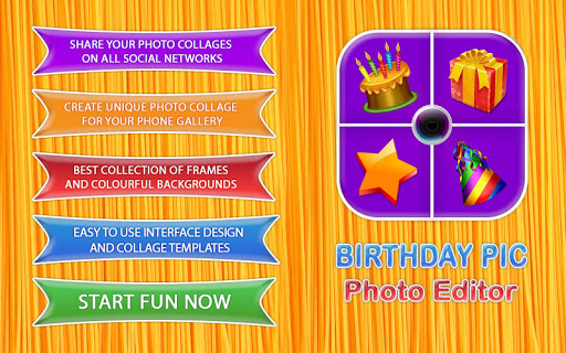 尋找最完美的生日禮物?沒有什麼比,它的設計,使您的特殊的人一個幸福的照片網格更加周到和樂趣。創造獨特的生日拼貼,可與姓名,年齡,或意願進行定制。創建照片拼貼,只需點擊幾下。發現驚人的生日背景完全免費的!眾多的生日相框是專門設計來美化你的照片並創建真棒生日照片! ♥ 生日- 圖片拼貼照片編輯♥是一個偉大的方式來顯示照片的快樂回憶。