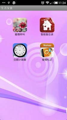 史上最给力应用来了,体验智能手机带来的方便快捷。 集合众多使用功能,爱情呼叫,爱情札记,日期计算器,智能备忘录等使用功能。并且持续更新中。 生活宝盒,是您生活的必备应用,快来体验吧。NoName工作室推荐使用。 附:长按桌面,添加窗口部件,桌面显示心形图标,点金快速进入爱情呼叫界面,方便使用,