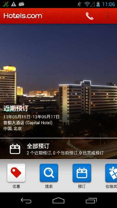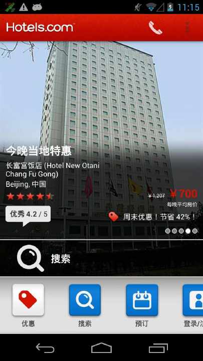 “今晚的当地优惠”功能仅供 Hotels.com 无线客户端用户专享,可查看每日特别优惠,临时预订当晚客房也十分方便。