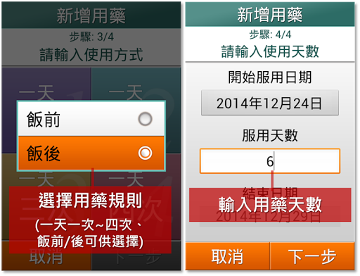 3、簡單選擇一天用藥幾次,有一天一次~四次、飯前/飯後供選擇;