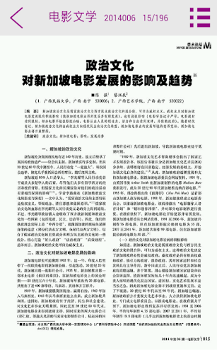 《电影文学》创刊于1958年,是长春电影制片厂旗下的刊物之一。创刊近50年来,依托长影的人才资源与品牌优势,发表了大量的影视文学剧本及影视学术作品,在全国广有影响。《电影文学》立足电影电视的理论研究,关注导演表演的创作思潮,拓展学术争鸣的文化视野,探究艺术流派的价值取向。