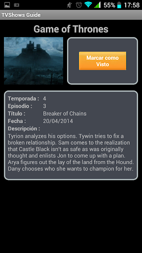 ·它具有所有的电视所有的情节的历史表明,你是以下,并且还允许您标记的情节已经看出来了,看电视节目的所有情节和季节的所有信息。