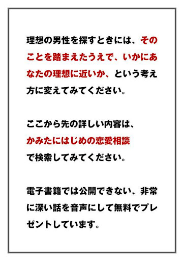 今回、このような電子書籍を無料で提供することにしたのは、そういった恋愛に悩む多くの女性のために、少しでも良い助言ができればと思ったからです。恋愛に必ず勝つ女性には、ある特徴があります。その逆に、恋愛に必ず悩み失敗する女性にも、ある特徴があります。