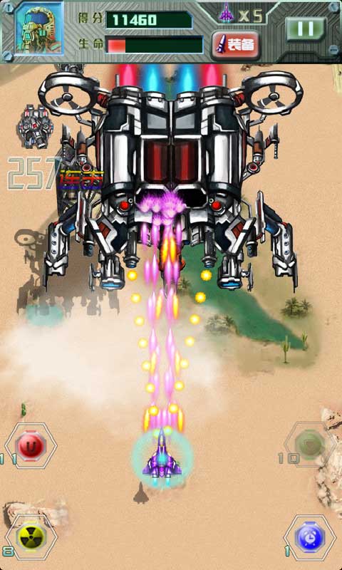 未来空间战争,你将成为银河系联合舰队中的一员!重现经典雷电战机,驾驭超级机器人,感受真实的爆炸效果,灵巧的操控感觉,超爽的空中格斗。