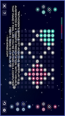《病原体 Pathogen》是一款供单人和多人玩的有奖策略游戏,由 Birnam Wood Games 研发,专为手机和平板设计。玩家们可从传染源在人体内扩散方式上获得灵感,通过把已升级的病菌扩散到临近细胞和转换敌对细菌来控制体内细菌图。 游戏规则简单,但要做到精通很难:直观视觉力学使得游戏对任何人来说都简单易学,容易上手,但是更高的难易级别设置以及更深层的玩家对抗策略选择将为经验丰富的策略游戏玩家带来一些挑战。