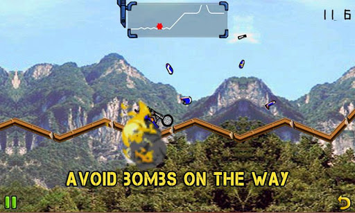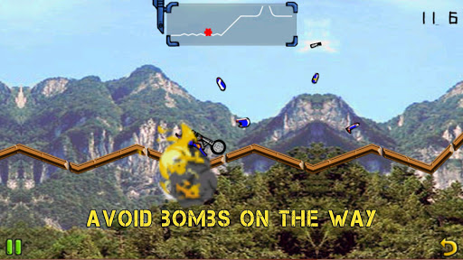 準備好成為一個瘋狂的駕駛!跑得一樣快,你可以,拿到獎金的翻轉。清新的藝術風格,完美的物理和很多有趣的細節,比如像破壞的摩托車及駕駛人,致命的炸彈等你甚至可以拖動騎手的地圖上時,他的離開自行車。讓我們來看看是誰在高比分板。