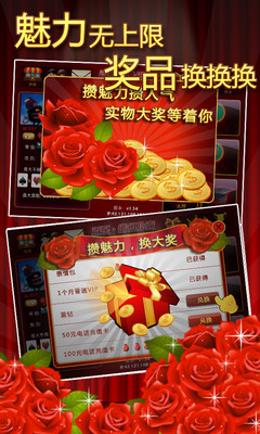 1.实物奖励:设有实物奖励机制。在游戏中玩家可以获得由其他牌友赠与的玫瑰魅力,增进好友间的感情。更可以凭借魅力值直接兑换丰厚的实物奖品!