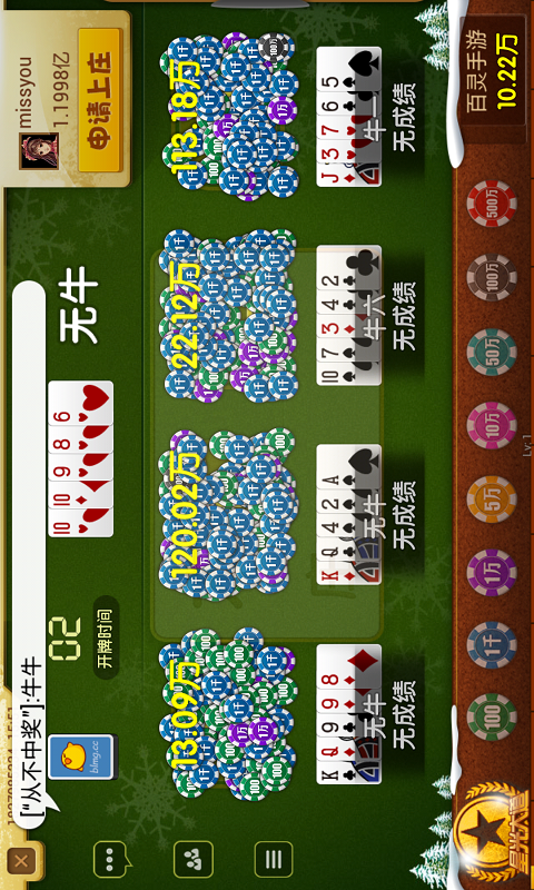 1.百人玩法,一人坐庄,其余99人为闲家;