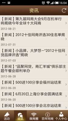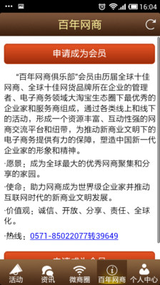 1. 用户可以便捷、及时的了解百年网商俱乐部的活动信息,资讯信息;